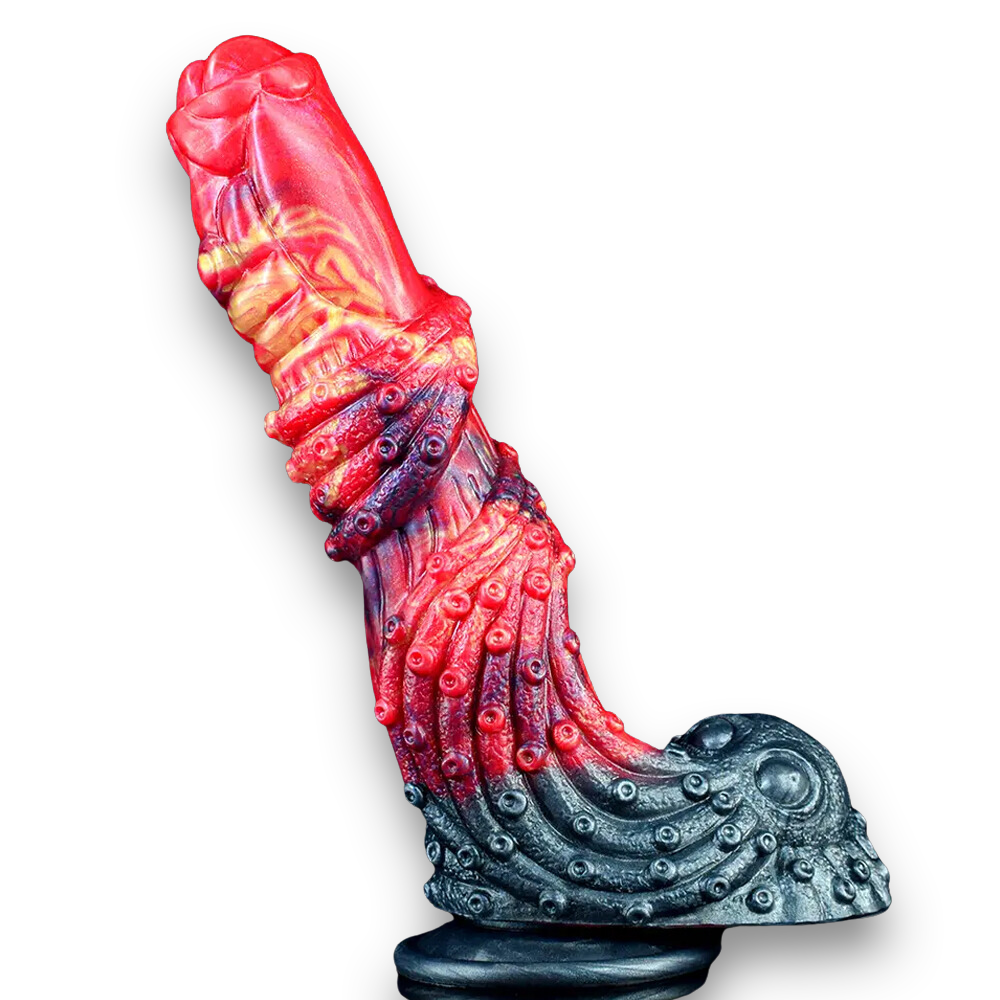 The Kraken's Grasp Dildo is a part of our Lustful Monsters collection. Coloured in red, gold, and black, this dildo features a fiery kraken wrapping its tentacles around a classic shaft. With this dildo, you will be able to turn your monster fantasies into a reality.