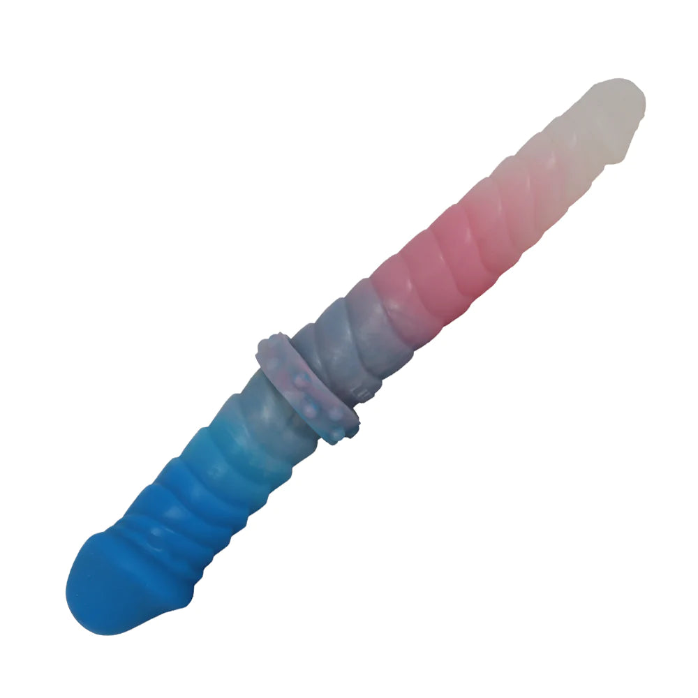 The Ribbed Double Ended Dildo is a part of our Shared Pleasure collection. Coloured in blue and pink, this double ended dildo is designed to be shared with a partner. Both shafts feature ribbing to enhance your experience. With this dildo, you can physically connect with a partner and share intimate pleasure with them.